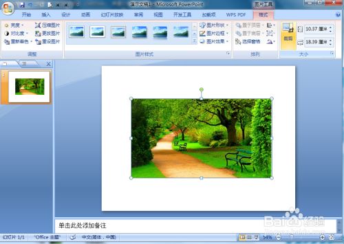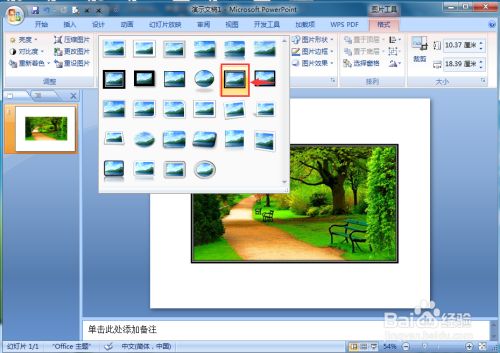 我们就在powerpoint中给图片添加上了复杂框架绿色样式。