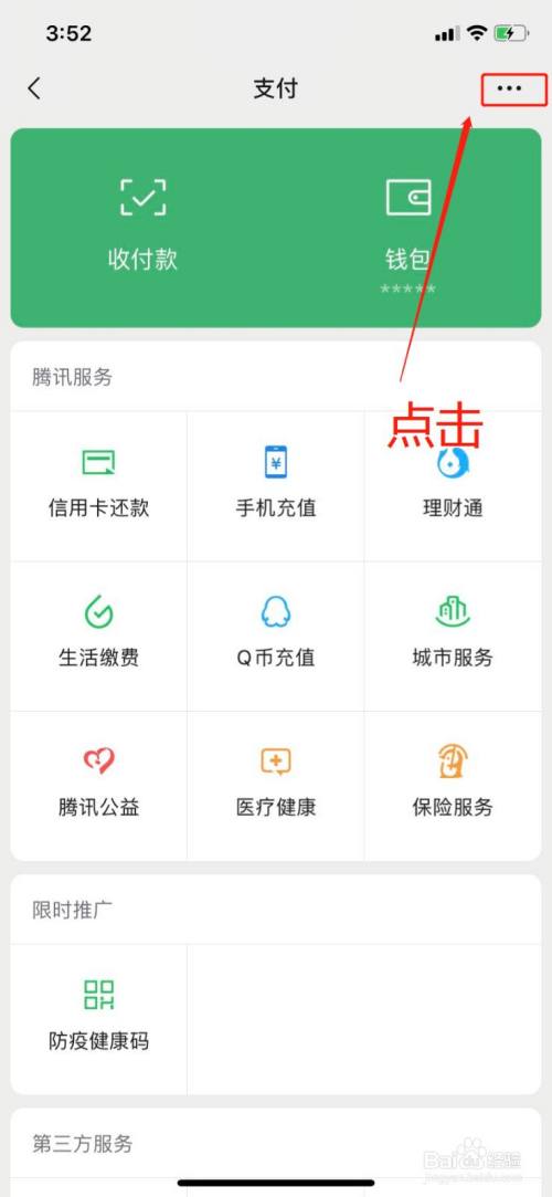 进入支付页面后,点击右上角的三个点,打开支付设置;
