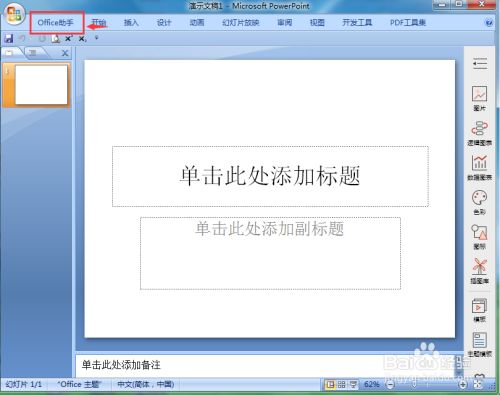 打开powerpoint 2007,可以看到其左上角有个office助手,我们如何将它封闭呢?
