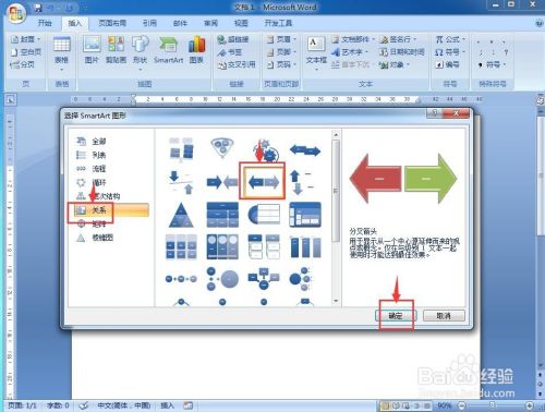 我们就在word2007中建立好了一个分叉箭头。