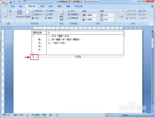 将鼠标移动分页符的前面,点击鼠标,将鼠标定位在这里;