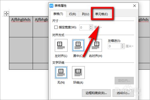 进入表格设置菜单,点击单位格;