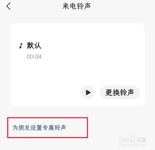 打开如下图界面,可以看到今朝利用的铃声,点击为伴侣设置专属铃声选项