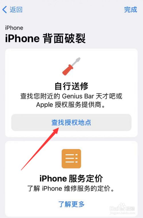 选择并点击比来的维修地址。