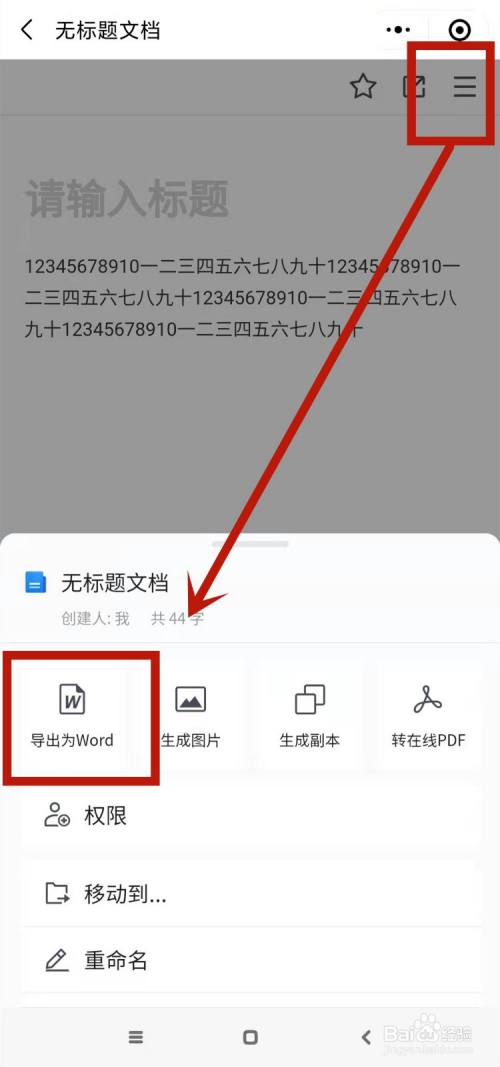 点击右上方的三小标,进行导出为word即可。