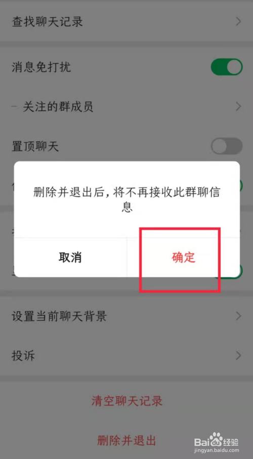 弹出如下图界面,提醒删除后将无法收到该群动静,点击确定按钮,这样就删除并退出群聊了。