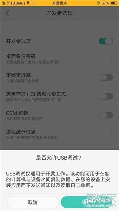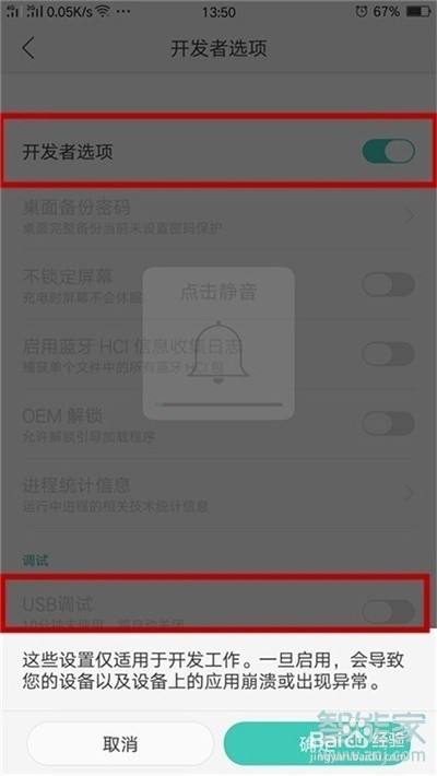 6.打开开辟者选项之后,点击打开底部【USB调试】,呈现提醒点击确定后即可