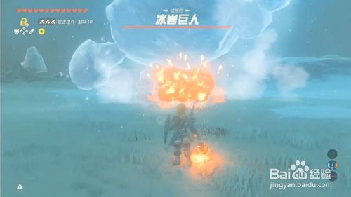 这个巨人用冰霜剑进犯一下 就可以爬上头顶 用双手兵器蓄力进犯上面的黑色石头就可以快速击杀