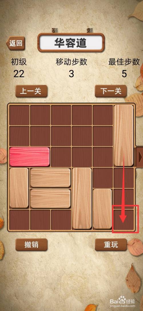将华容道积木拼图初级22关右上角长竖块标的目的下移动