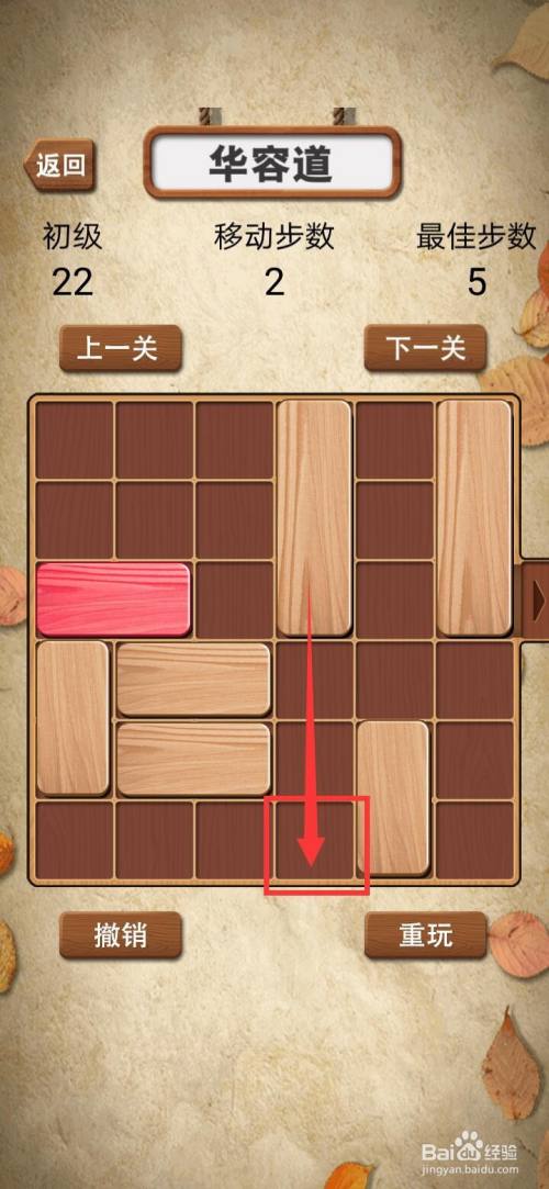 将华容道积木拼图初级22关红色横块标的目的右方出口移动