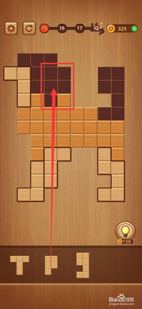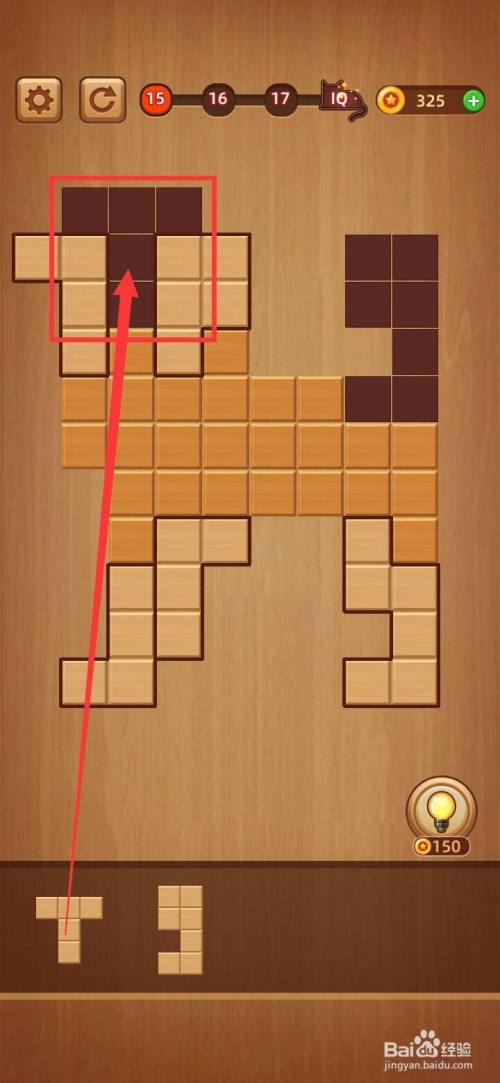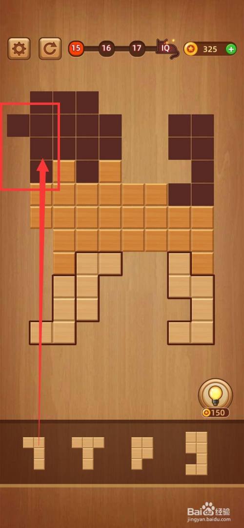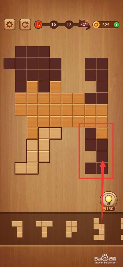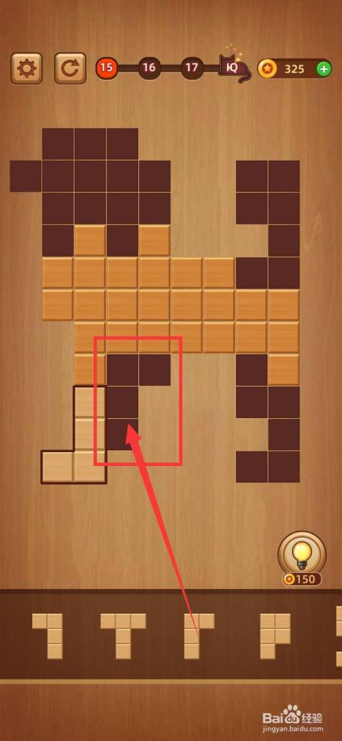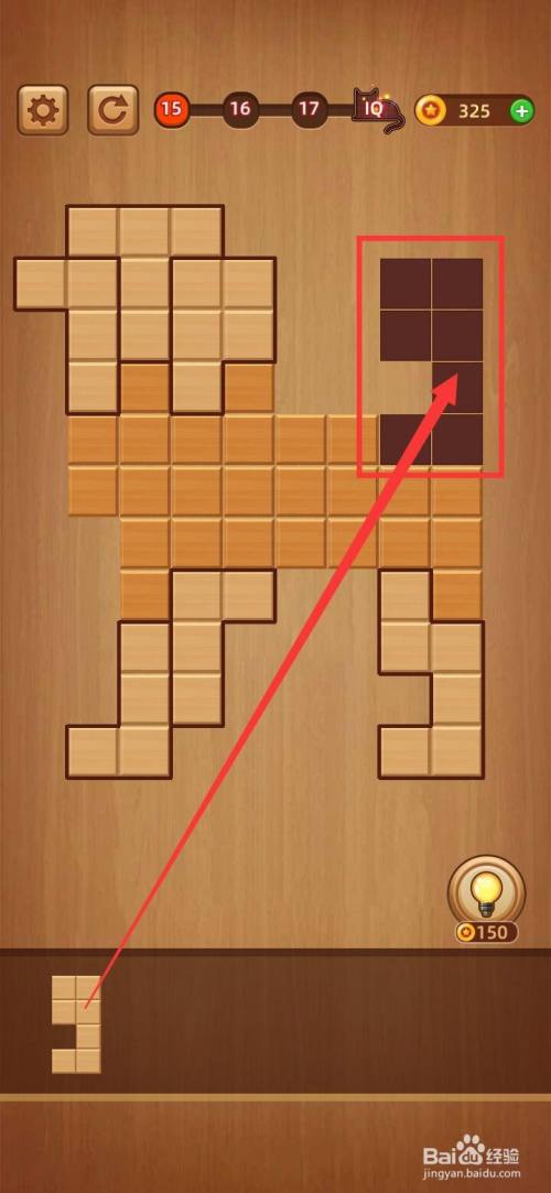 打开方块拼图LV.15,把下面第二块拼图移到左下角缺口