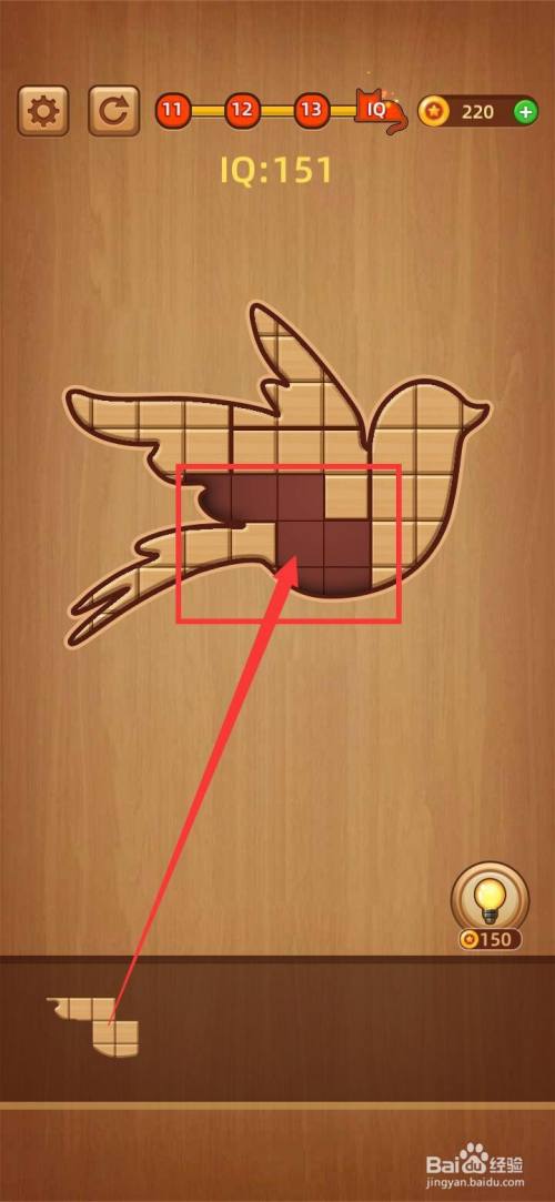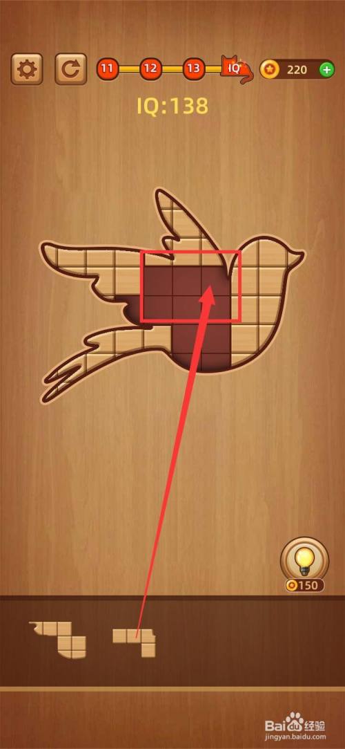 把下面第二块小拼图移动到方块拼图LV.14 IQ100中心偏上缺口