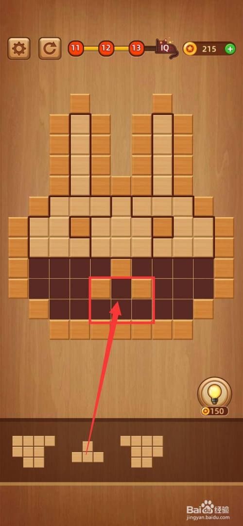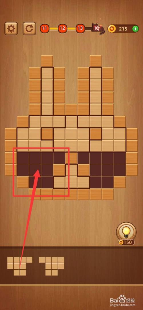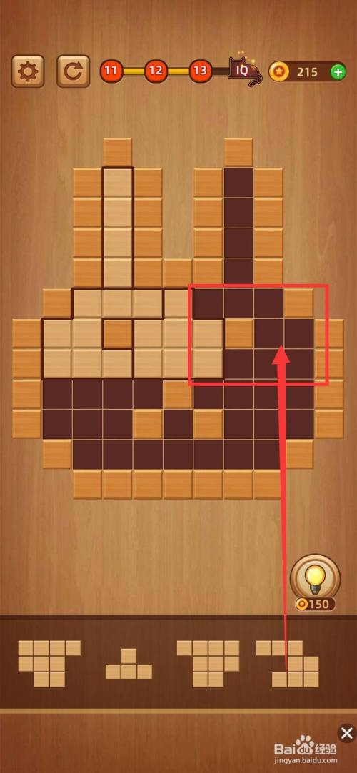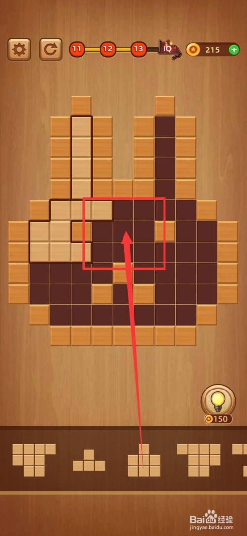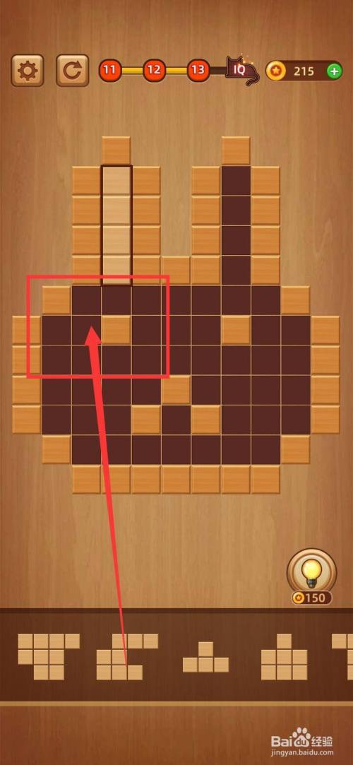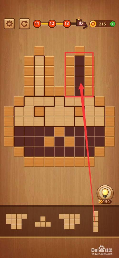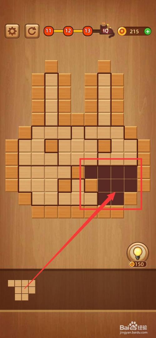 打开方块拼图LV.13,把下面第三块1字形拼图移到左上角缺口