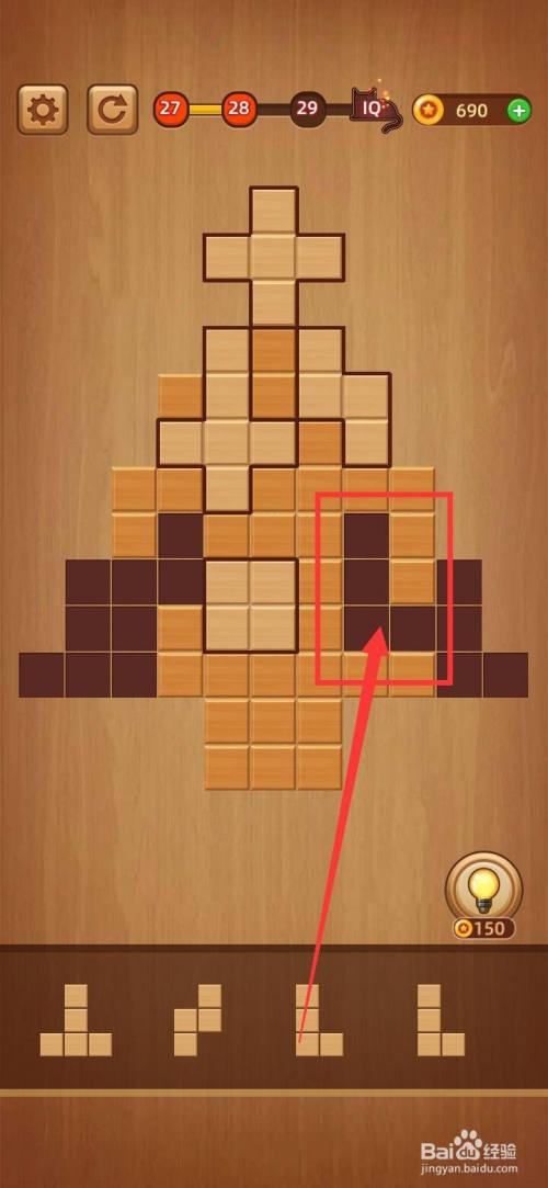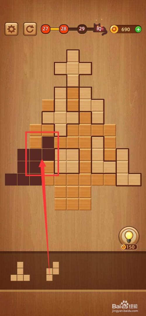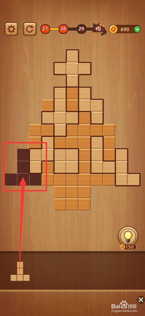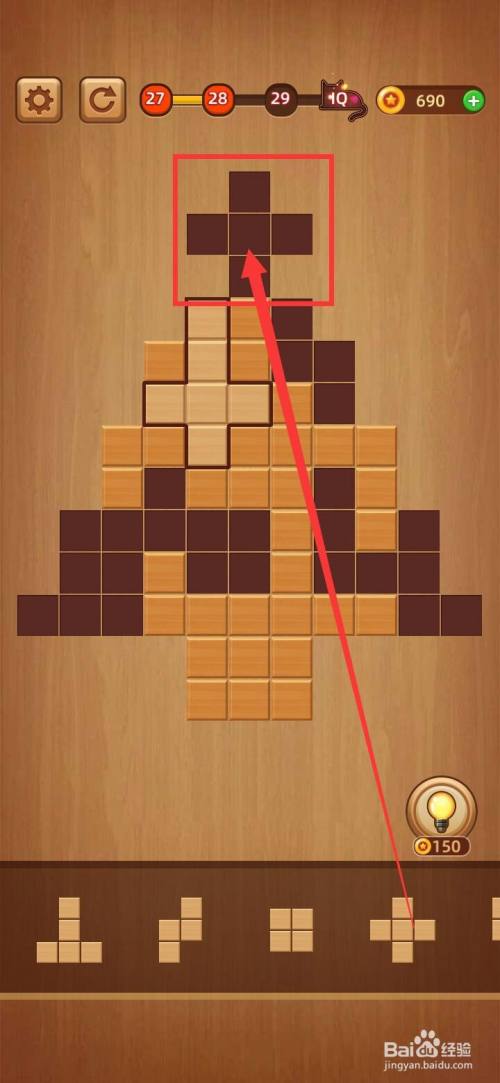 把下面第四块拼图移到方块拼图LV.28中上方偏右缺口