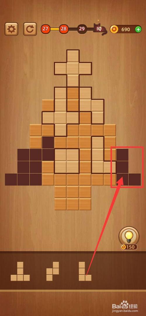把下面第三块L形拼图移到方块拼图LV.28最右角缺口