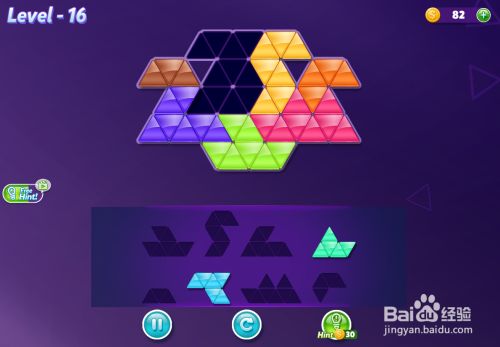 最后摆上亮绿色图形,放在蓝色图形的下面挨着,如图,这样就过关了。