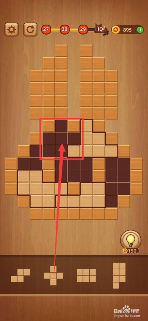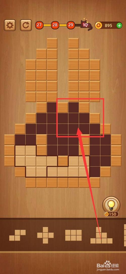 把下面第四块复杂拼图放到方块拼图LV.29中上方位置
