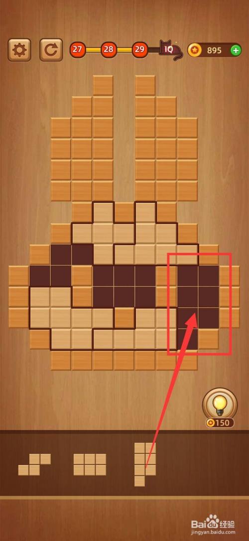 把下面第三块拼图放到方块拼图LV.29右下方位置