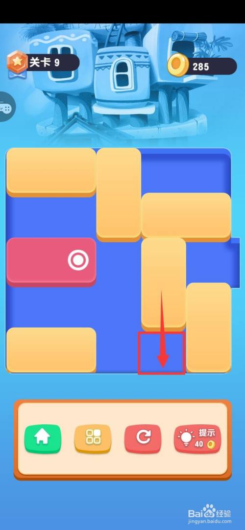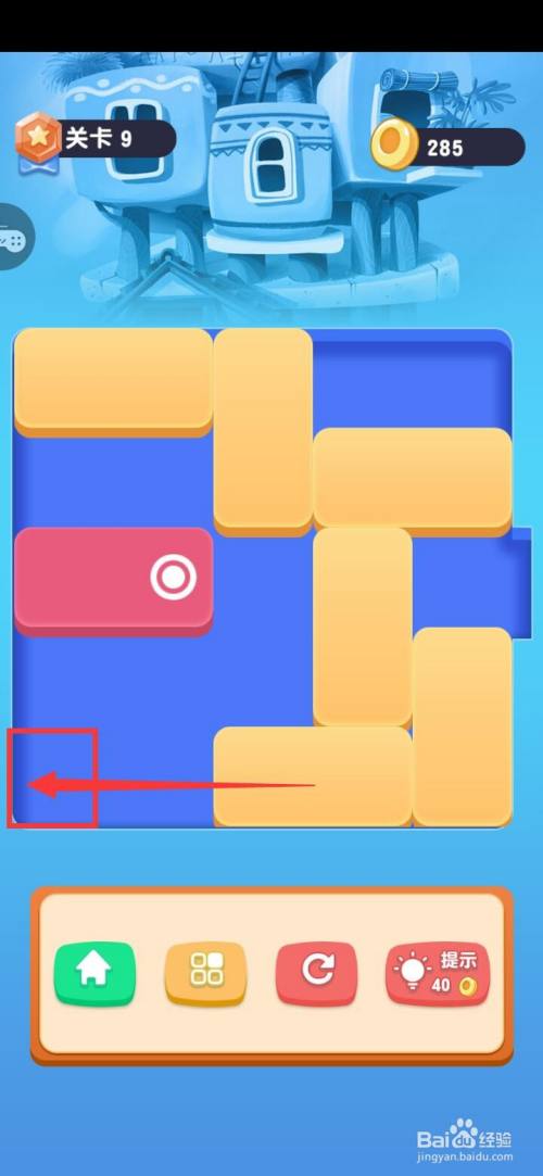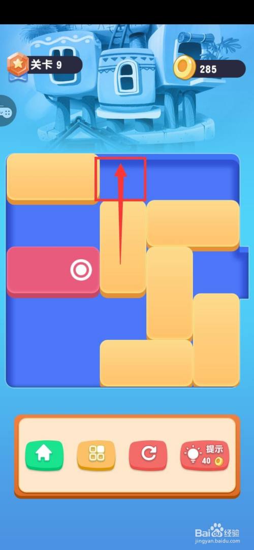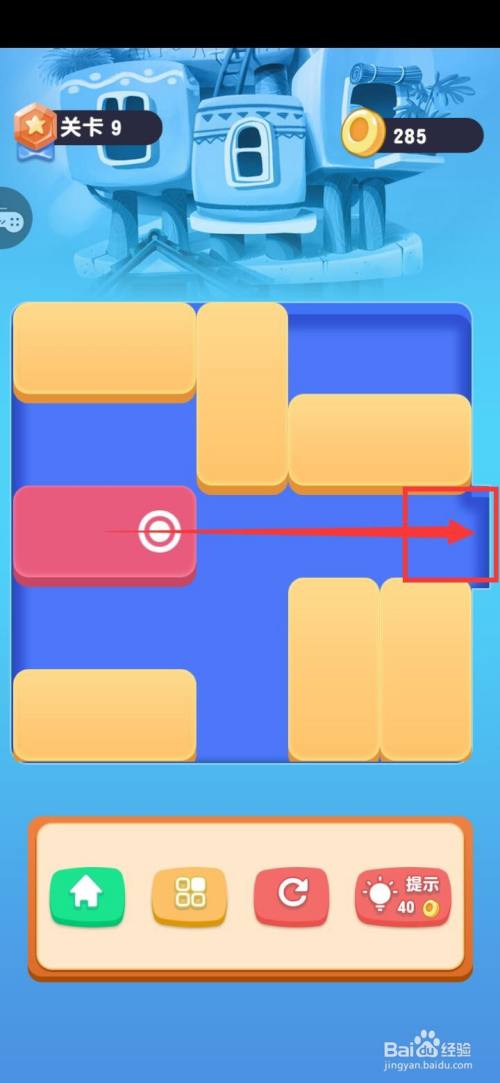 按住华容道经典闯关之关卡9红色横块标的目的右移即当作