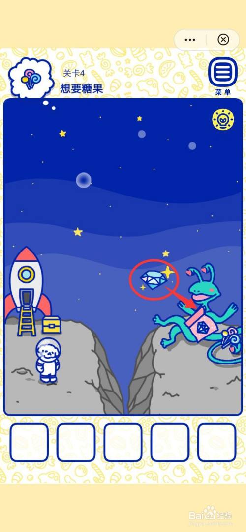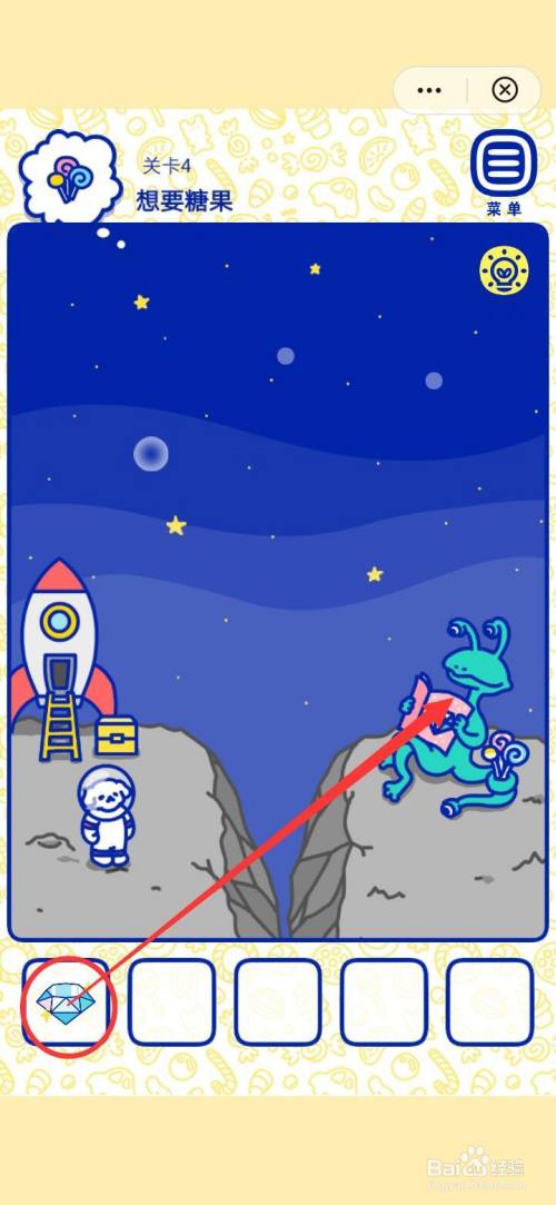 第三步,将萌犬糖果的心愿4想要糖果的星星钻石送红外星人,让他放下糖果