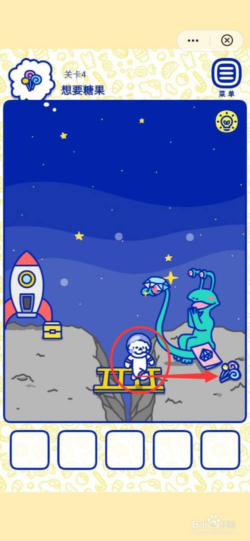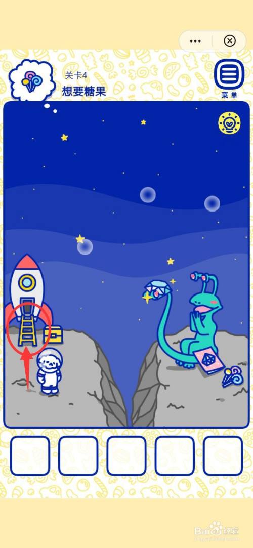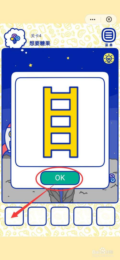 第四步,点击萌犬糖果的心愿4想要糖果火箭下的梯子,放到方框里