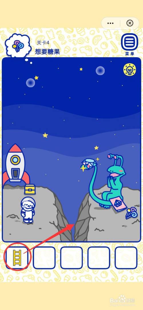 第六步,从萌犬糖果的心愿4想要糖果的梯子走曩昔,顺遂拿到糖果