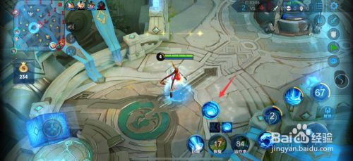 回家之后的英雄点击中心的大招技术,就可以传送到方才大乔利用的大招法阵内。