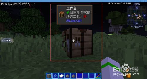 进入游戏后,首先我们找到工作台,瞄准后右键打开合当作界面。
