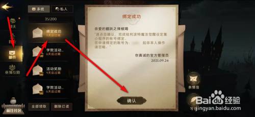 点选“邮件”-“绑定当作功”,点击“确认”即可当作功绑定设定集。