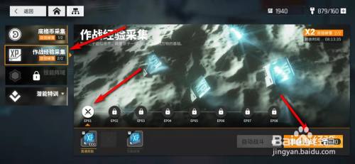 点选“作战经验采集”,点击选中挑战关卡,点击“筹办作战”。