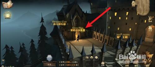 打开地图点击到城堡上空;点击进入霍格沃茨会堂;