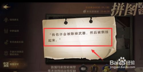 工具/原料vivoy93s安卓8.1哈利波特魔法醒觉手游方式/步骤1首先点击拼图寻宝活动。2获得线索【被除失落兵器】。3点击前去藏书楼。4点击起头战斗。5击败对方获告捷利。6最后就能获得拼图。END注重事项tips:请求点赞和存眷。