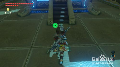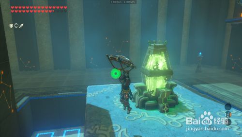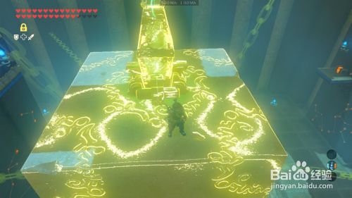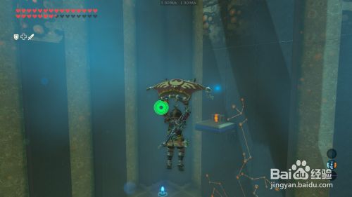 进入神庙可以看到大厅中心 有个不断弹起的地板 跳下去 在林克被弹起的刹时 撑起滑翔伞 飘上巨石