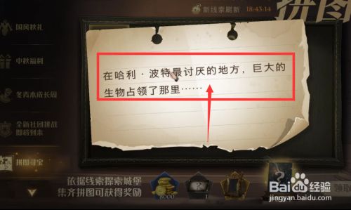 工具/原料vivoy93s安卓8.1哈利波特:魔法醒觉手游方式/步骤1首先点击拼图寻宝。2点击碎片后可获得提醒。3接着前去城堡本家儿楼。4点击和传授进行对话。5击败巨鼠。6最后就能获得第二块拼图。END注重事项tips:请求点赞和存眷。