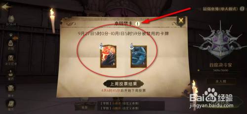 工具/原料荣耀9xEMUI10.1.0.138哈利波特魔法醒觉1.20.202330方式/步骤1在哈利波特魔法醒觉手游,点击进入“决战俱乐部”。2点击“进入”。3点击进入一个决战模式。4点击“禁卡”。5即可看到本周禁卡环境,点击“!”图标。6即可查看到禁卡法则详情。END