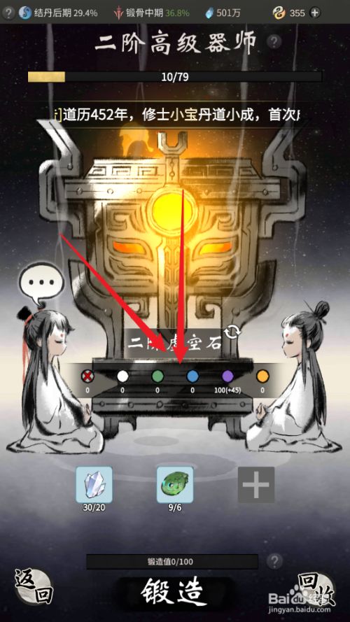 工具/原料小米Mi10MIUI12.0一念逍遥2.4.8方式/步骤1打开一念逍遥游戏2在游戏中点击下方洞府按钮3在洞府中点击宝器4接着点击锻造虚空宝石5锻造完当作后点击行囊6然后利用方才锻造的虚空宝石这样就可以了END
