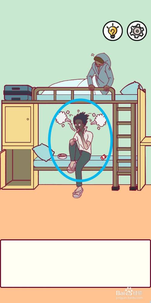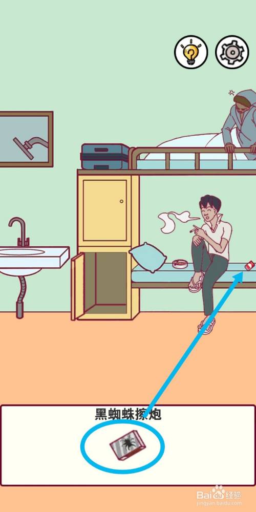点击拖动【擦炮】,放到正在抽烟的男外行边,替代失落烟盒。