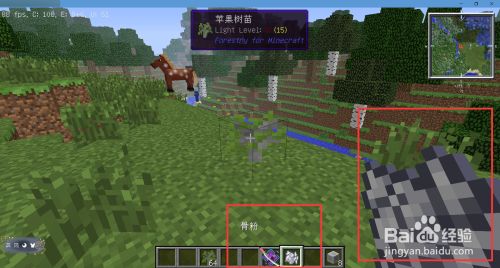 接着,我们利用滚轮将骨粉切换至手中,然后鼠尺度星对着苹果种子点击右键。