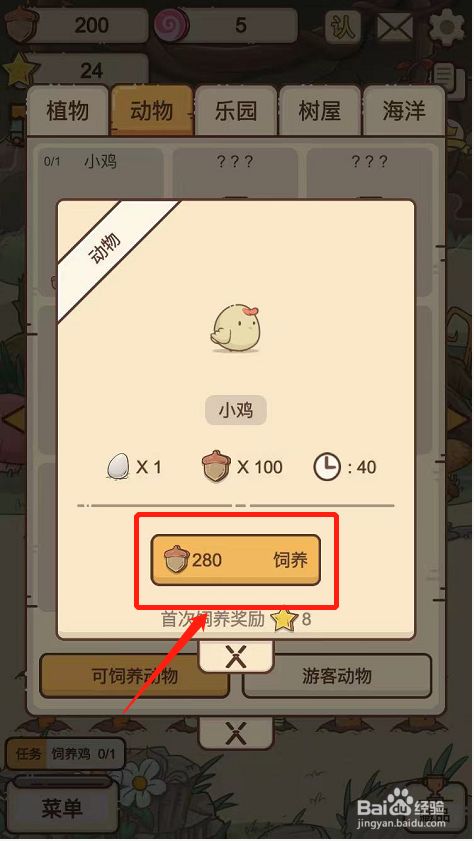 耗损板栗,点击豢养按钮