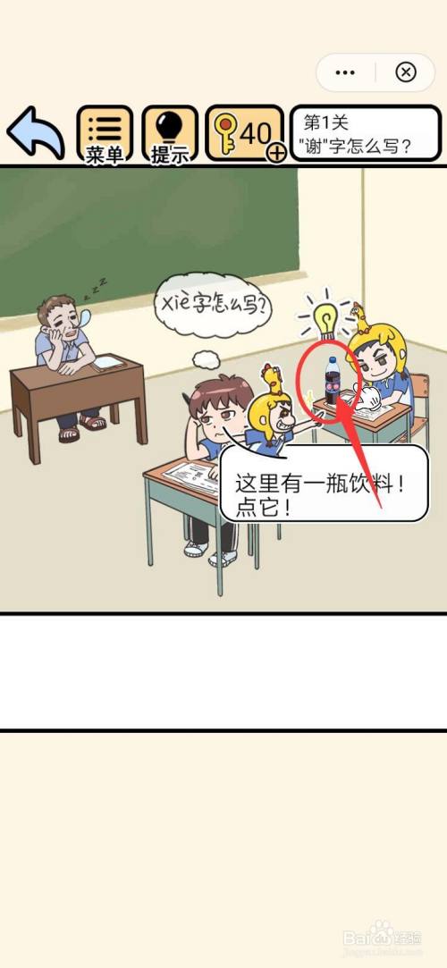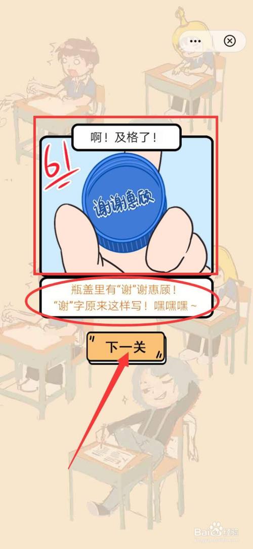 工具/原料华为荣耀play3EMUI9.1.1我不要挂科1.0.0方式/步骤1首先打开手机我不要挂科本家儿页面,点击进入游戏关卡1“谢”字怎么写2注重看我不要挂科关卡1“谢”字怎么写页面表达的意思,点击旁边的汽水3把我不要挂科关卡1“谢”字怎么写的汽水移到本家儿人公身上,让他打开瓶盖4发现我不要挂科关卡1“谢”字怎么写瓶盖上有谢字,顺遂填写卷子,通关当作功啦END