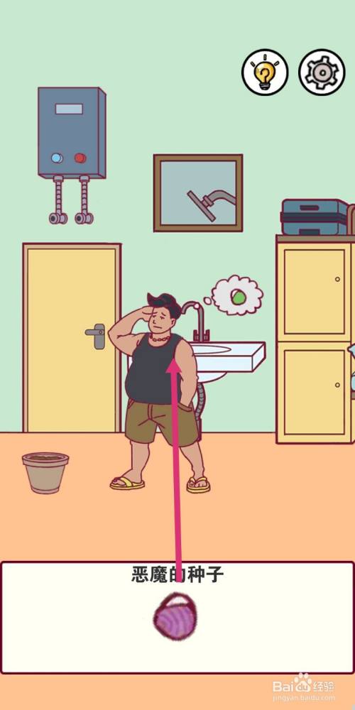 滑动画面至左侧,把【恶魔种子】给男生,让他种进花盆。