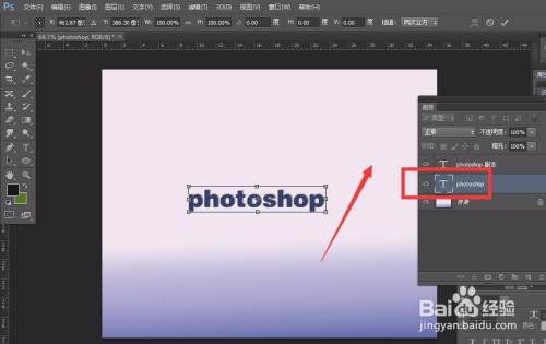 按ctrl+t自由变换原文字图层,按动键盘上的偏向键,使之标的目的右上方移动。