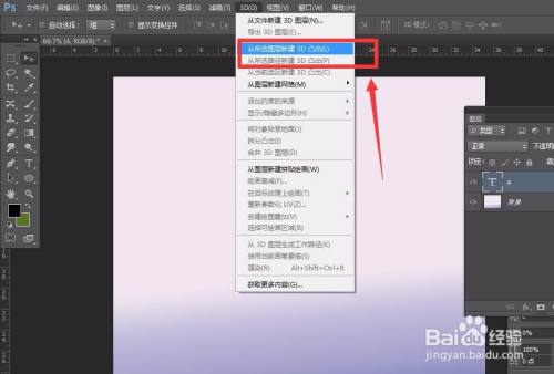 点击菜单栏的【3D】——【从所选图层新建3D凸出】,如下图,就可以快速呈现3D结果。