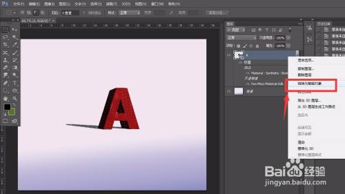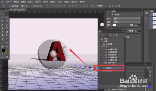 最后,我们选择【无限光】,给字体加上一个投影结果,如下图所示,最后,我们封闭3D面板,将图层转化为【智能对象】,这样,一个3D字体结果就完当作了。