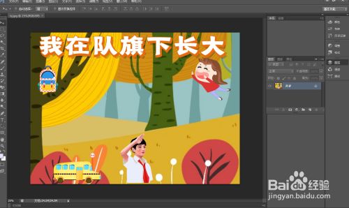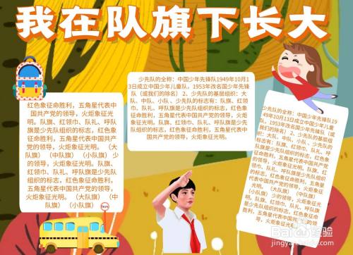 新建一个图层,建立好手抄报的报名《我在队旗下当作长》;