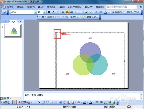 - 标的目的外拖动句柄将维恩关系图放大,标的目的内拖动是缩小。