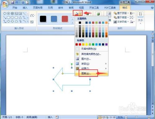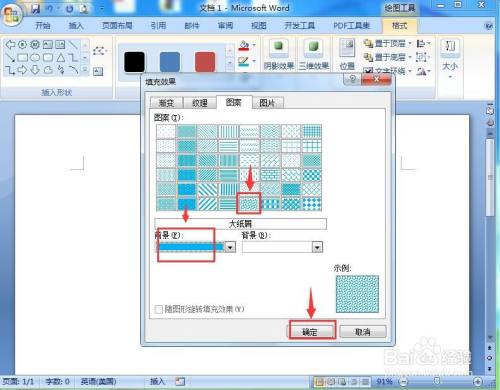 我们就在word中给左箭头填充上了蓝色大纸屑图案。