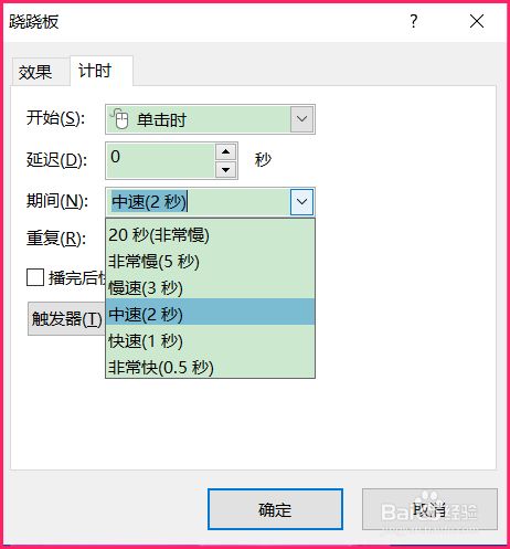 在计时的对话框中设置时代通俗2秒,反复设置为直到下次单击,然后点击确定。