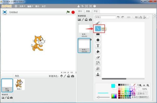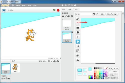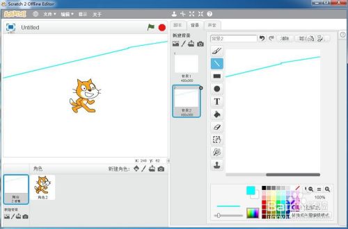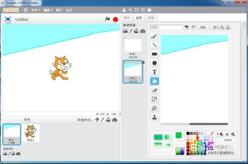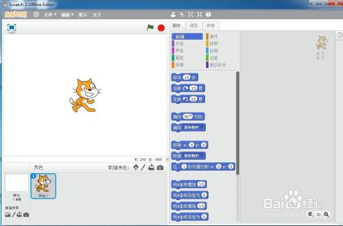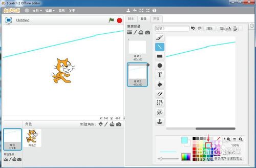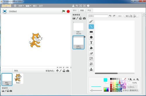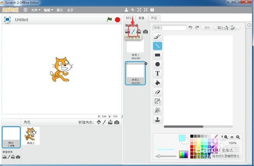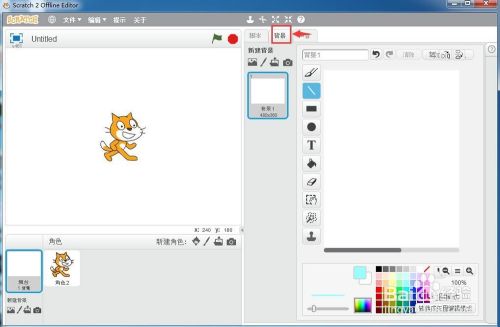 打开scratch2.0,进入其本家儿界面中;