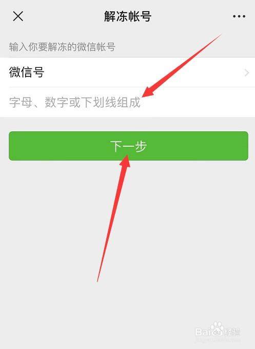 在解冻账号里,输入要解冻的微旌旗灯号,点击【下一步】。